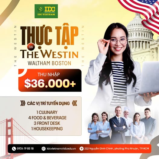Thực tập với mức lương $36.OOO tại The Westin Waltham Boston!!!.